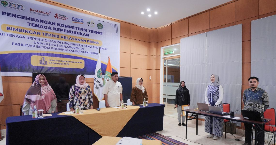 FT UNMUL Bekerja sama dengan Badan Pengembangan Sumber Daya Manusia Provinsi Kalimantan Timur Corporate University (BPSDM Kaltim CorpU) melalui Bidang Pengembangan Kompetensi Teknis (PKT) menyelenggarakan menyelanggarakan Bimbingan Teknis (Bimtek) Pelayanan Prima untuk tendik pada hari sabtu, 5 Oktober 2024.